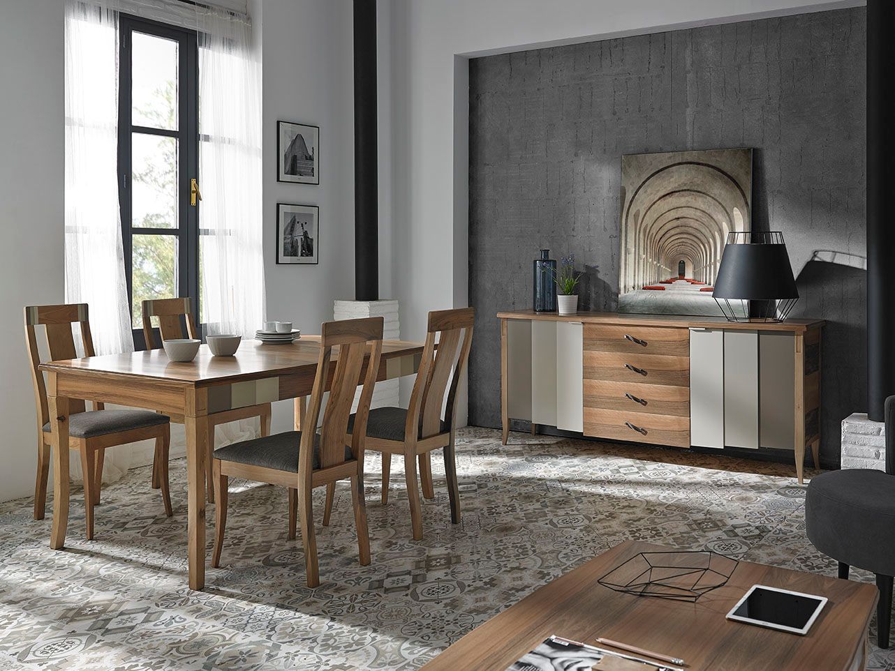 Comedor colección Zeus , en madera de nogal y chapas de nogal Español, combinado ó no, con lacas y compuesto por :