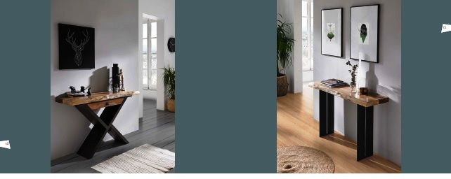 Consola nº8, Colección Lazos con cajón , en madera de Nogal, patas imitacion Forja ,