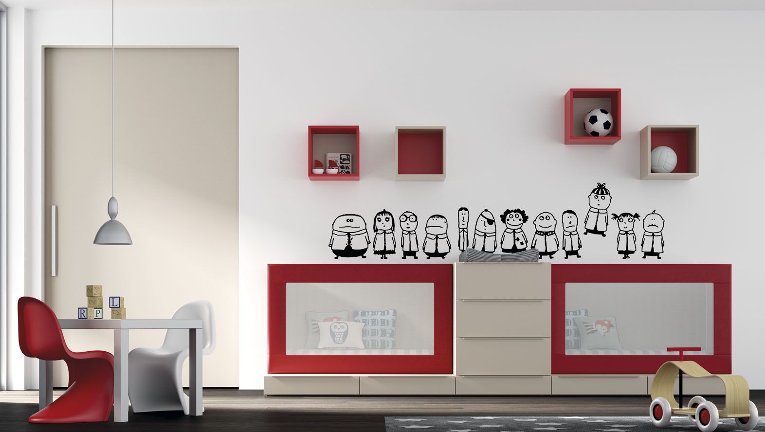 Dormitorio infantil de cuna convertible en acabado laminado sintético