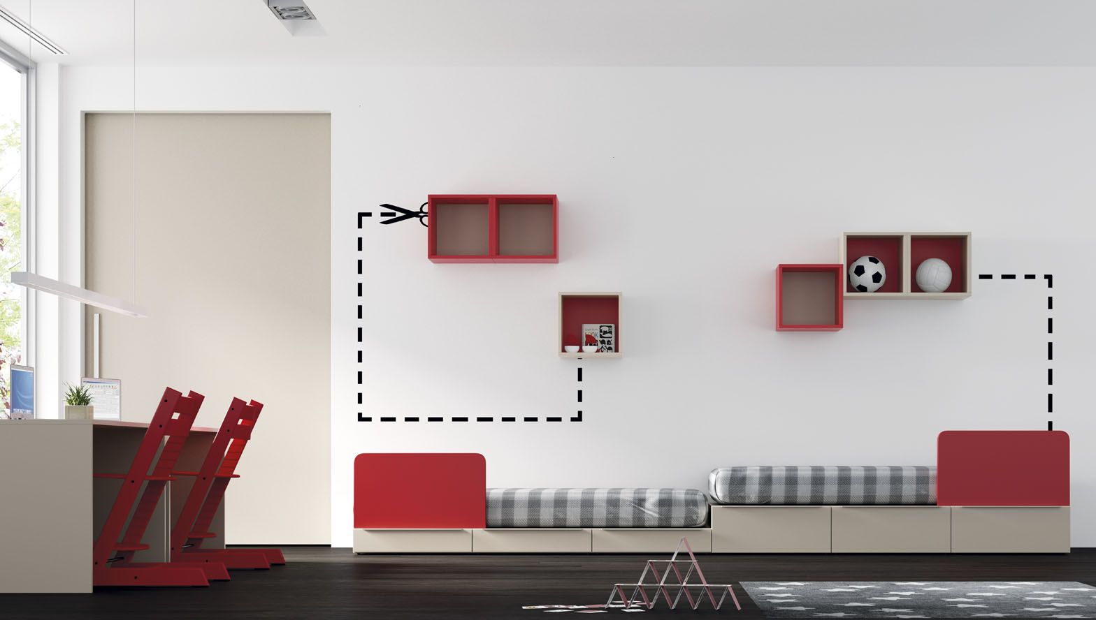Dormitorio infantil de cuna convertible en acabado laminado sintético