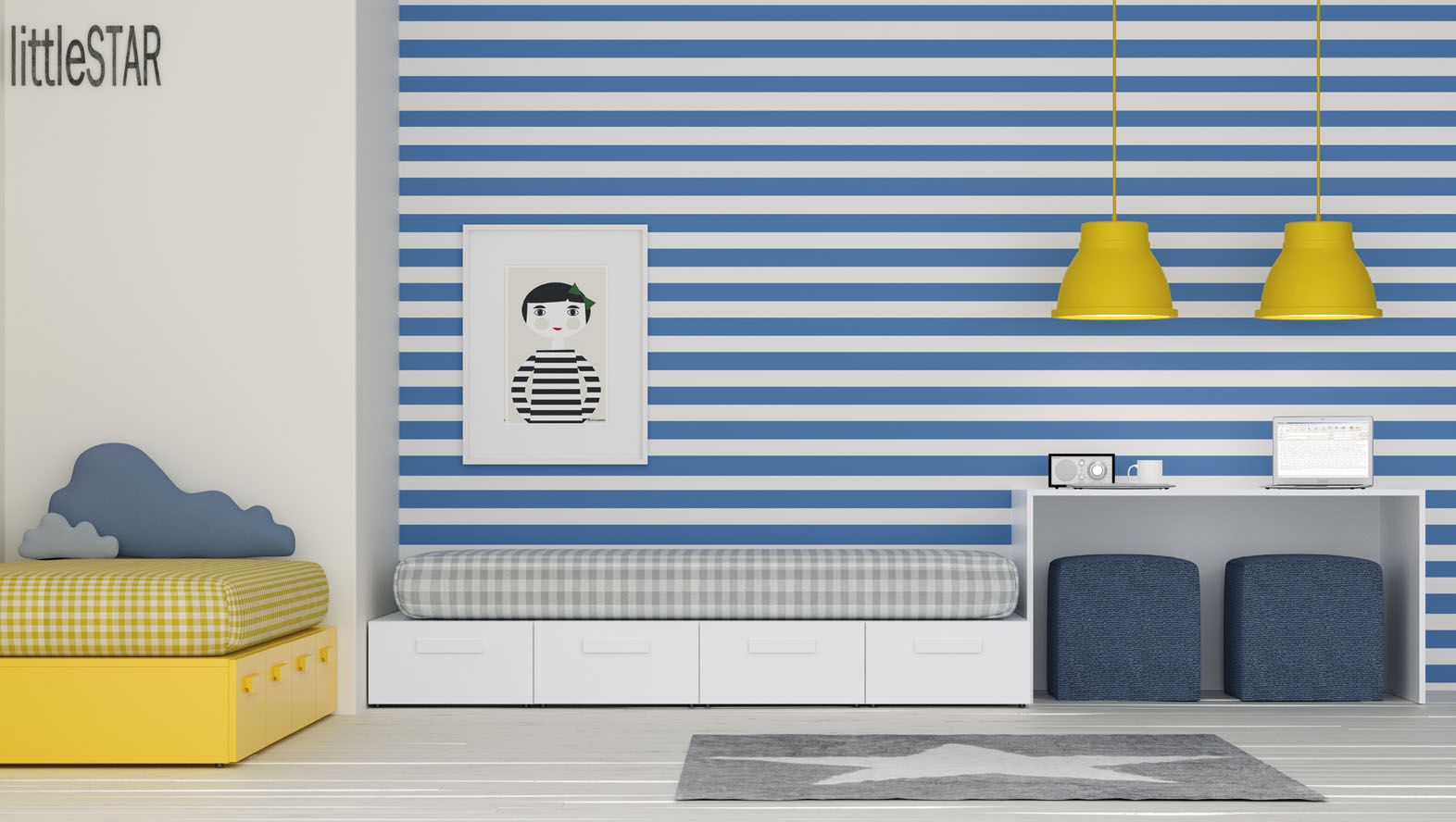 Dormitorio infantil de cuna y cambiador convertible en laminado sintético
