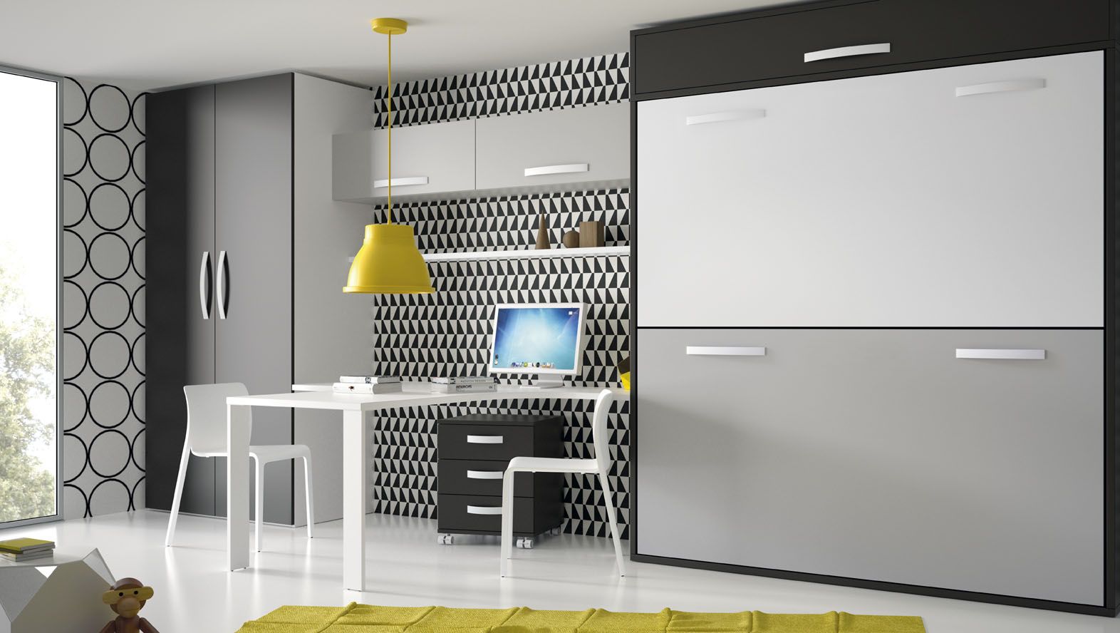 Dormitorio litera abatible, armario y mesa de estudio, laminado sintético