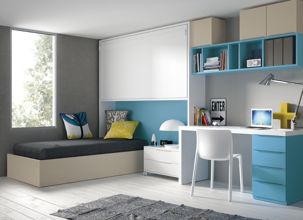 Dormitorio cama abatible, cama arcón y mesa de estudio, laminado sintético