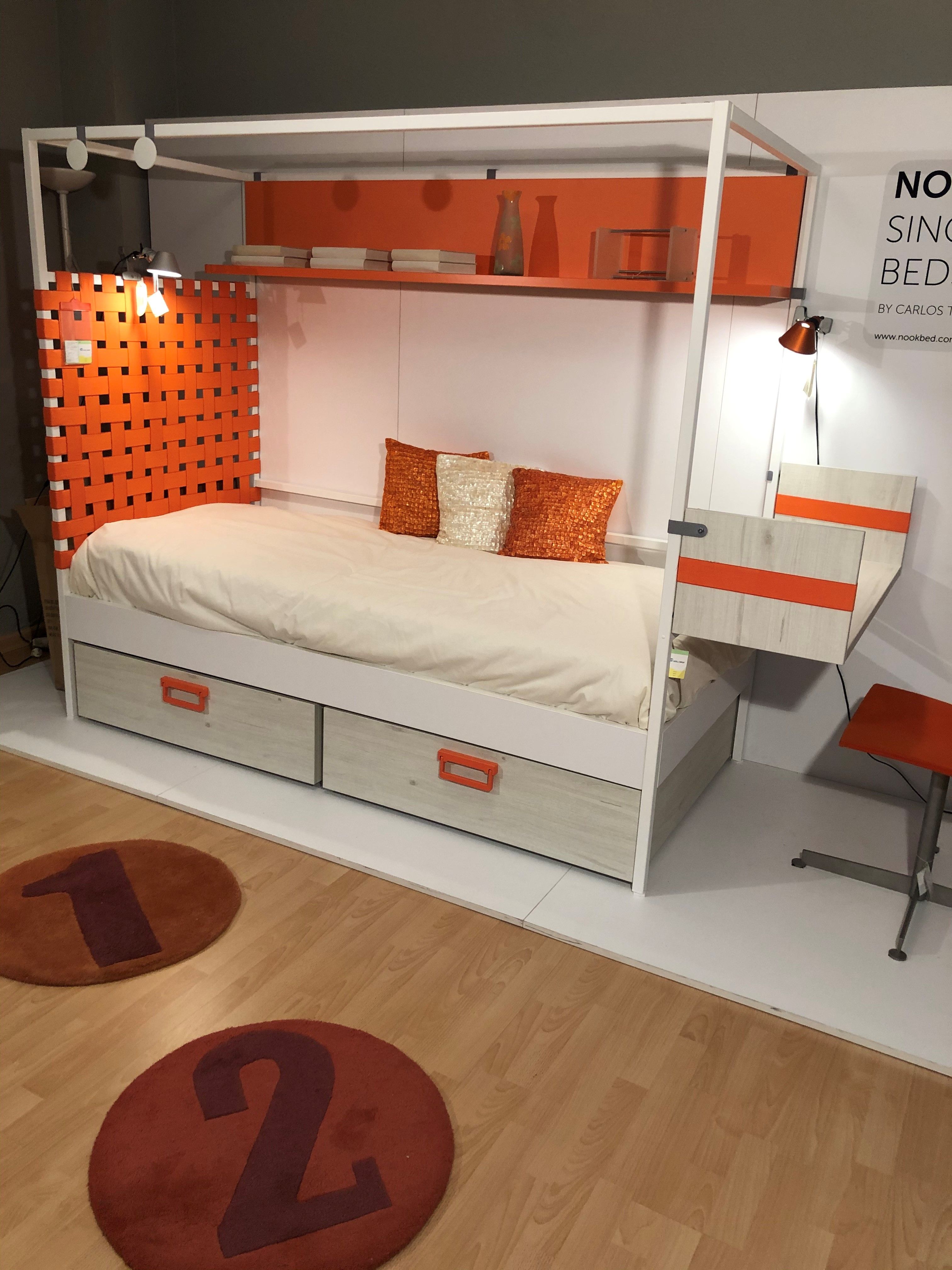 Dormitorio juvenil nook madarina, acabado enn nogal/acero , compuesto por cama dosel y estudio