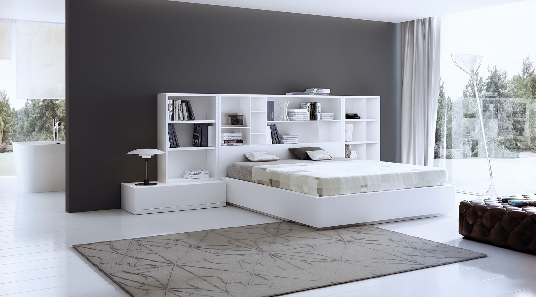 Dormitorio cama, cabecero corrido y mesitas, lacado mate
