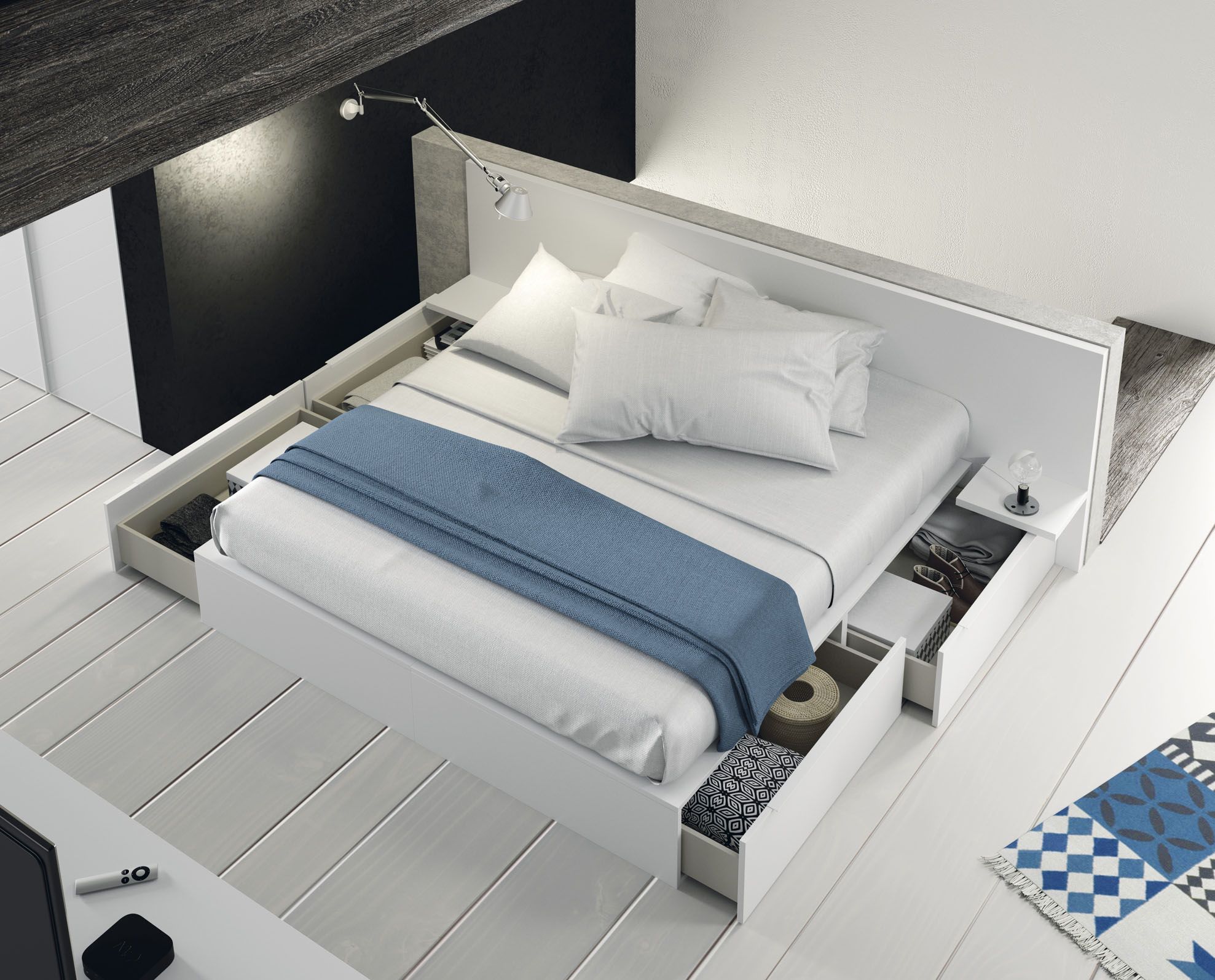 Dormitorio cama, cabecero corrido y mesitas, laminado sintético