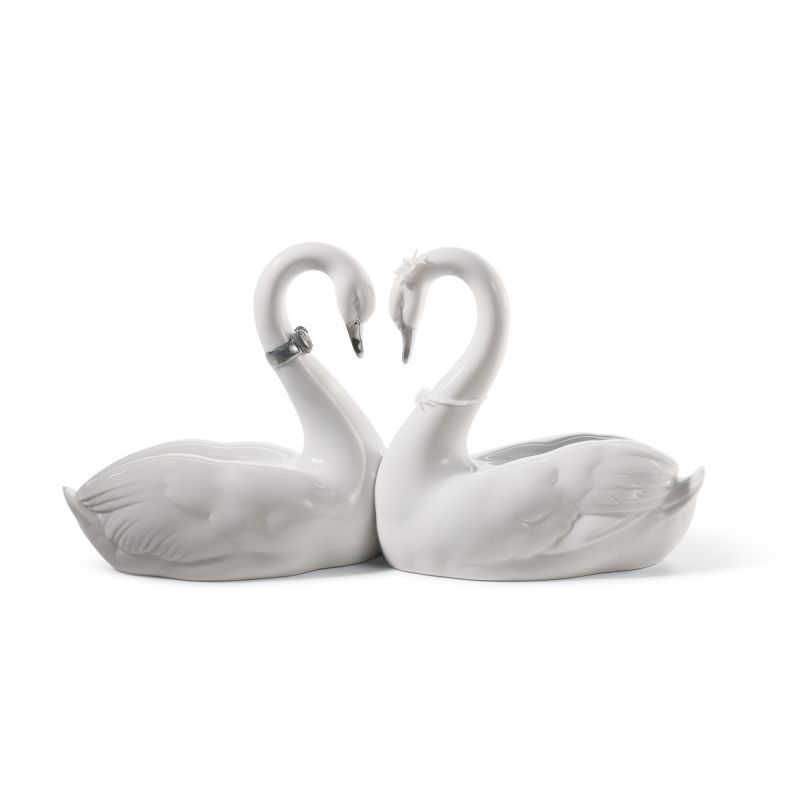 Figura cisnes Corazón blanco. Lustre plata lladró en porcelana hecho a mano.