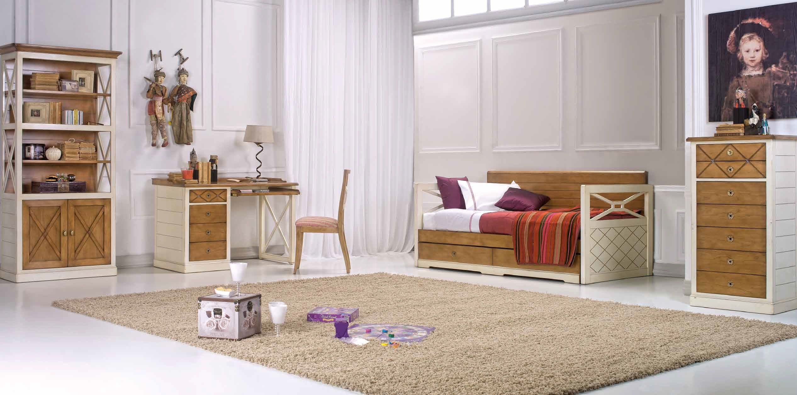Dormitorio Juvenil en madera de cerezo macizo y combinado con laca, en varios tonos o terminaciones, compuesto por :