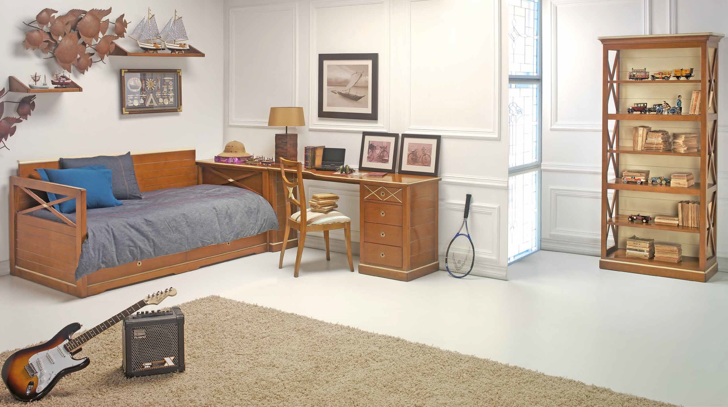 Dormitorio juvenil en madera de cerezo macizo, compuesto por: