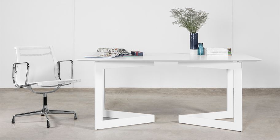 Mesa comedor rectangular fija, lacado mate y metal lacado mate