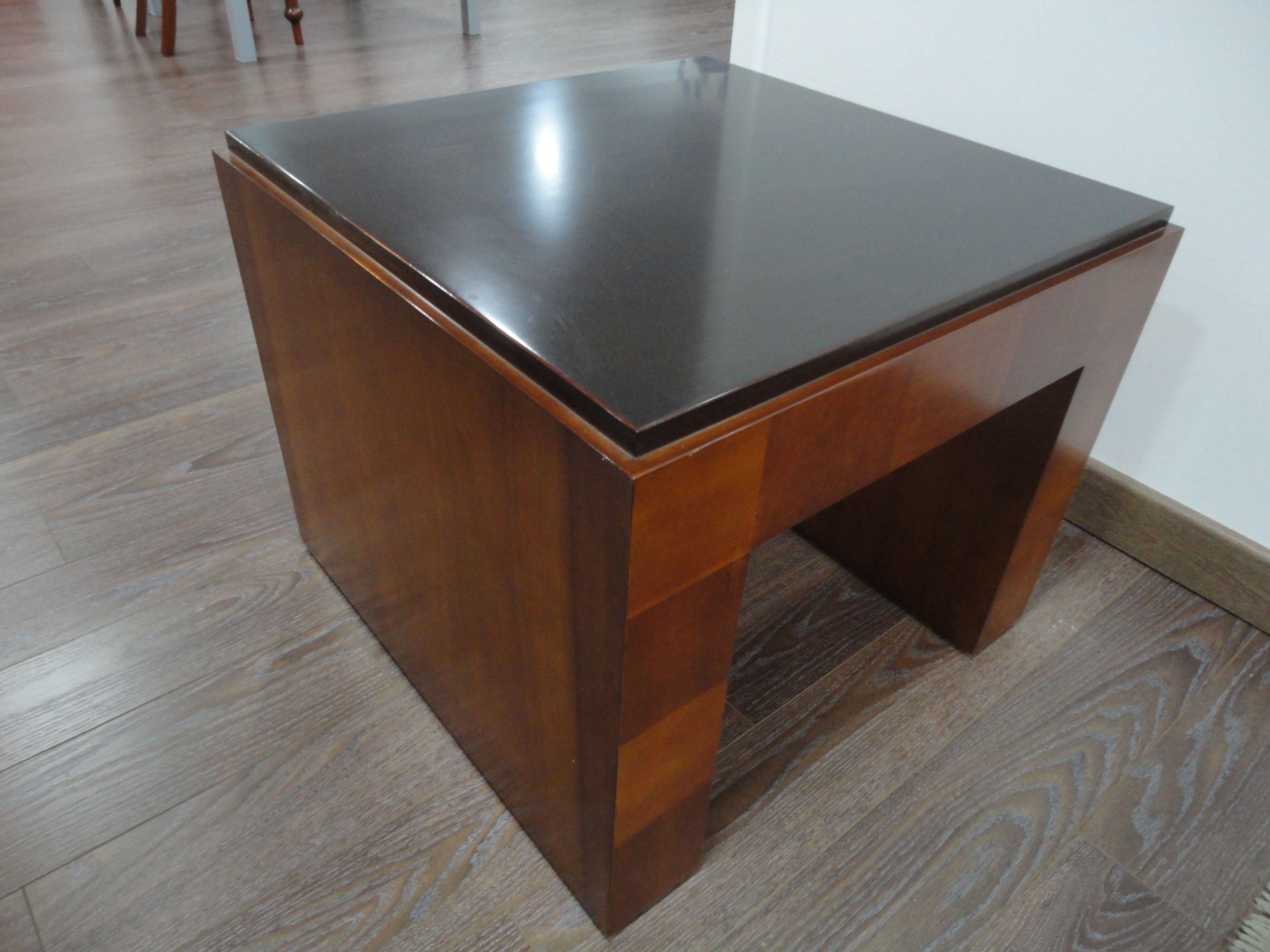Mesa de centro auxiliar en acabado nogal y wengue.
