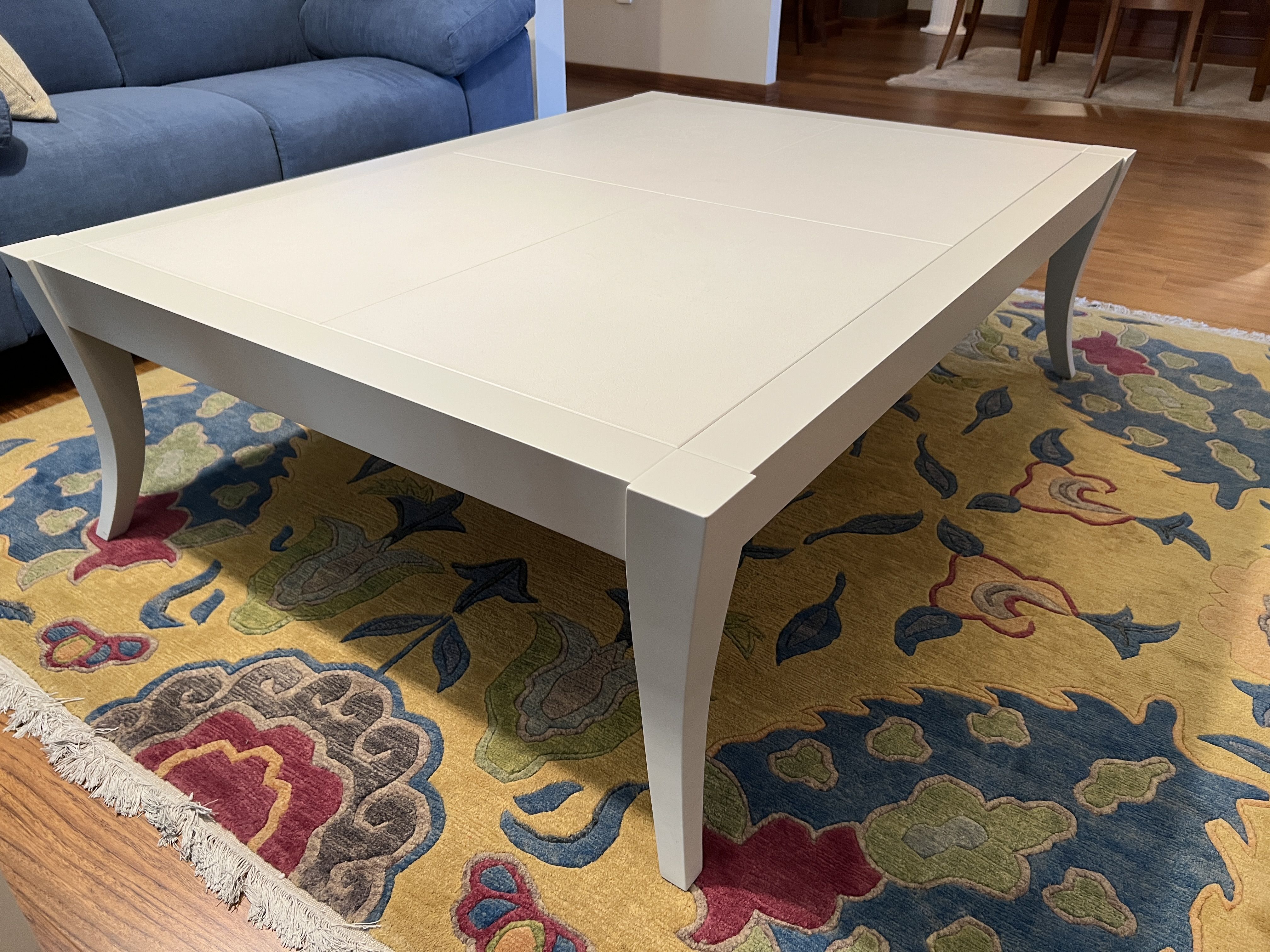 Mesa de centro opalo en laca mate y texturizado piel en madera.