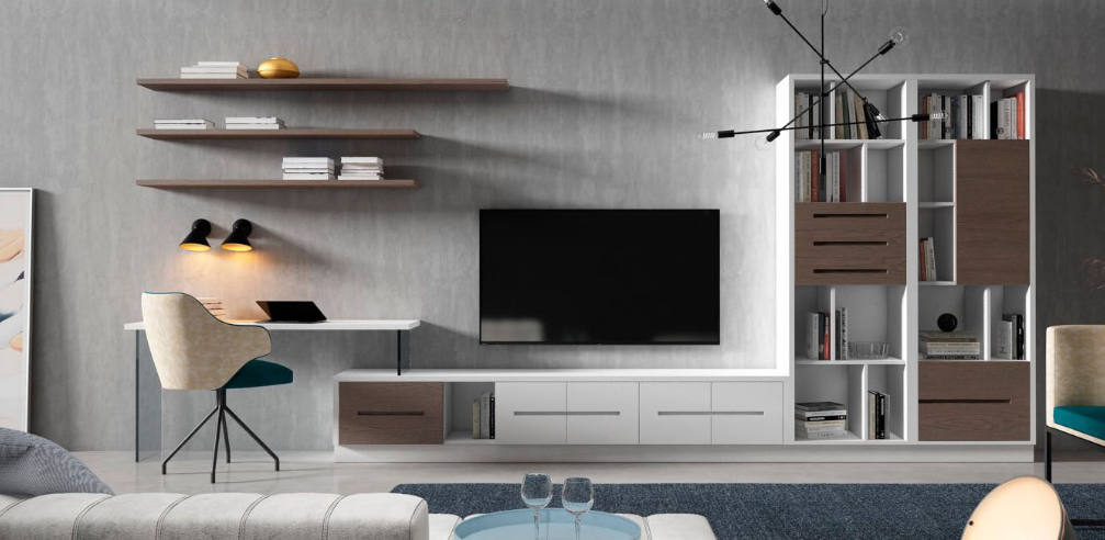 Colección AIRE , tendencia marcada y atemporal. Salones y comedores con multitud de opciones de diseño y acabados, asi como una amplia gama de auxiliares a juego. Posibilidad de crear tu zona de teletrabajo , en tu salón.