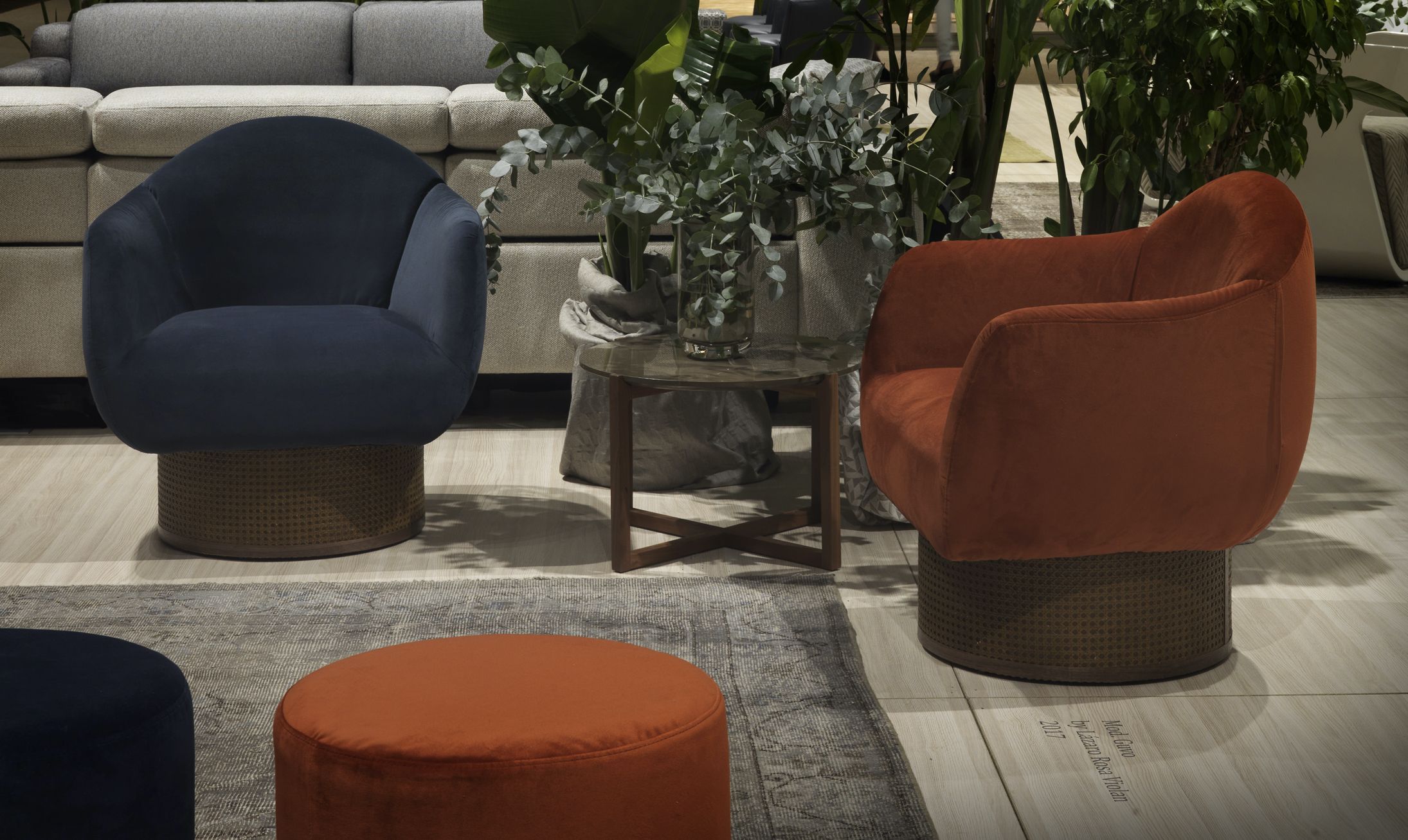 Base rejilla barnizada natural, nogal o gris. Asiento tela o piel.