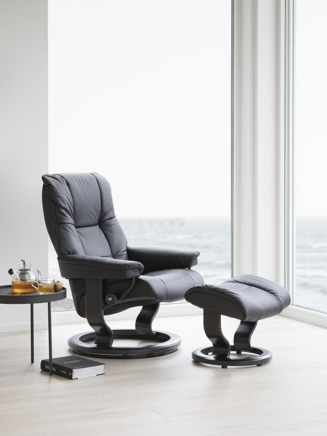 Sillón Mayfair presentado en pie signature, disponible en todos los pies de este fabricante, así como en relax eléctrico y bateria, se puede tapizar en piel o en tela