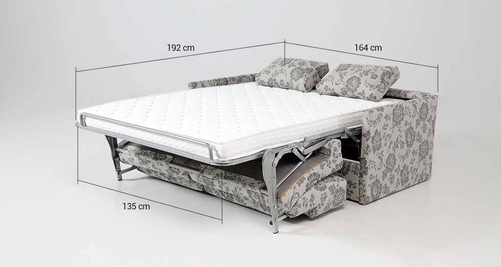 Brazos desmontables. Disponible en tres medidas diferentes. Modelo especial con el que se consigue una cama de 135 en un sofá de 165cm de ancho y 82cm de fondo.